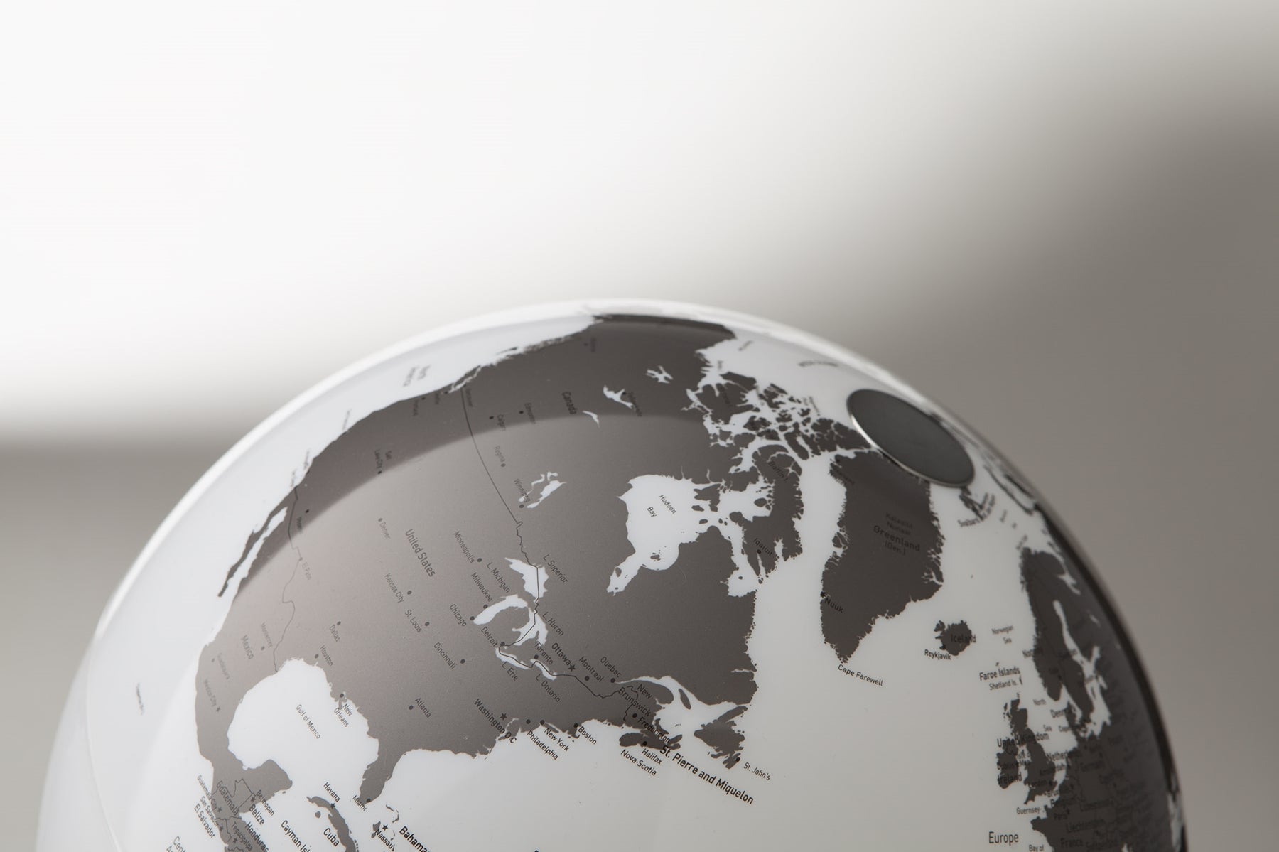 Dank des außergewöhnlichen Designs des Gestells aus Acrylglas scheint die Kugel über dem ringförmigen Fuß zu schweben.Die Kugel mit einem Durchmesser von 30 cm wird mit einem sparsamen LED-Leuchtmittel (4 W) der Energieeffizienzklasse A+ beleuchtet und gestattet dem Objekt somit die Verwendung als Lampe.