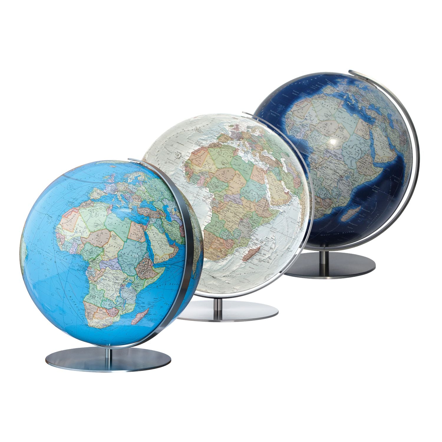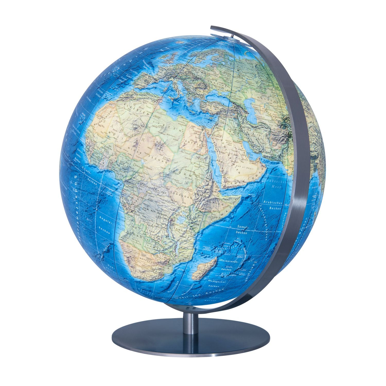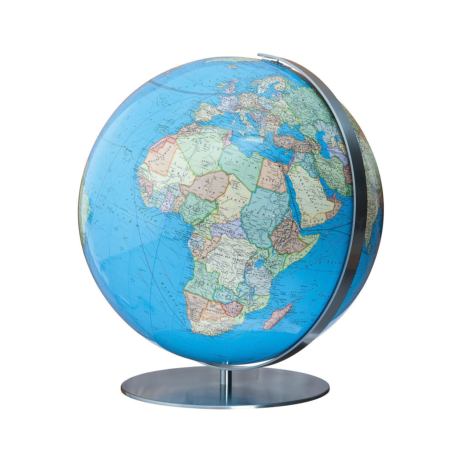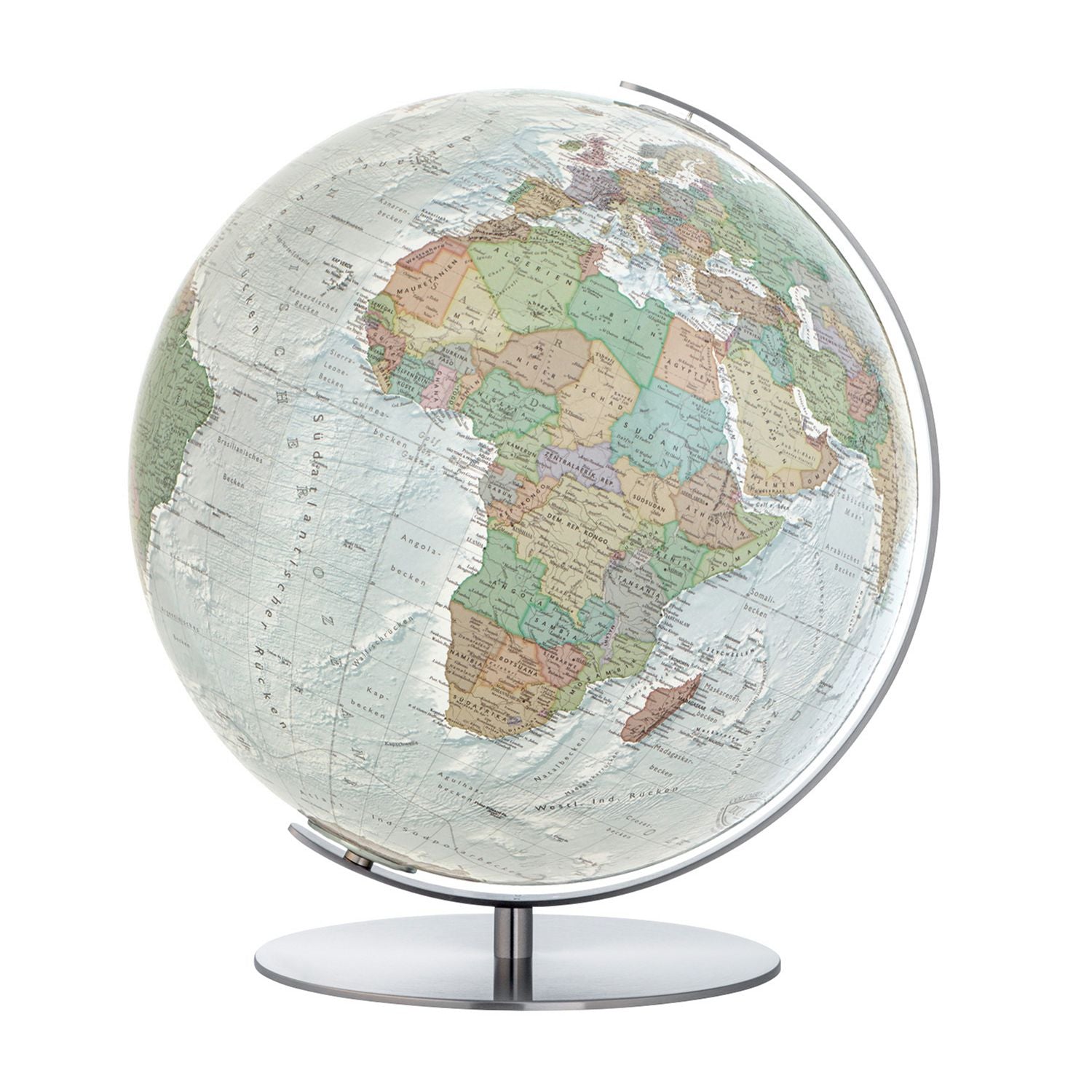 Columbus Tischglobus mit D 51 cm, Acrylglas, Edelstahl, OID-fähig, Chrom, verschiedene VariantenDank des aufwendig gestalteten Kartenbilds und dem 51 cm Durchmesser, lässt der große Tischglobus auch noch die Entdeckung der kleinsten Details unseres blauen Planeten zu. Mit über eineinhalb Metern Kugelumfang zeigt dieser COLUMBUS Globus unbeleuchtet klar strukturiert das aktuelle politische Kartenbild unserer Erde. Beleuchten Sie den Globus, wechselt er zum physischen Kartenbild. Der große Tischglobus von Columbus ist in verschiedenen Ausführungen des Kartenbildes erhältlich.