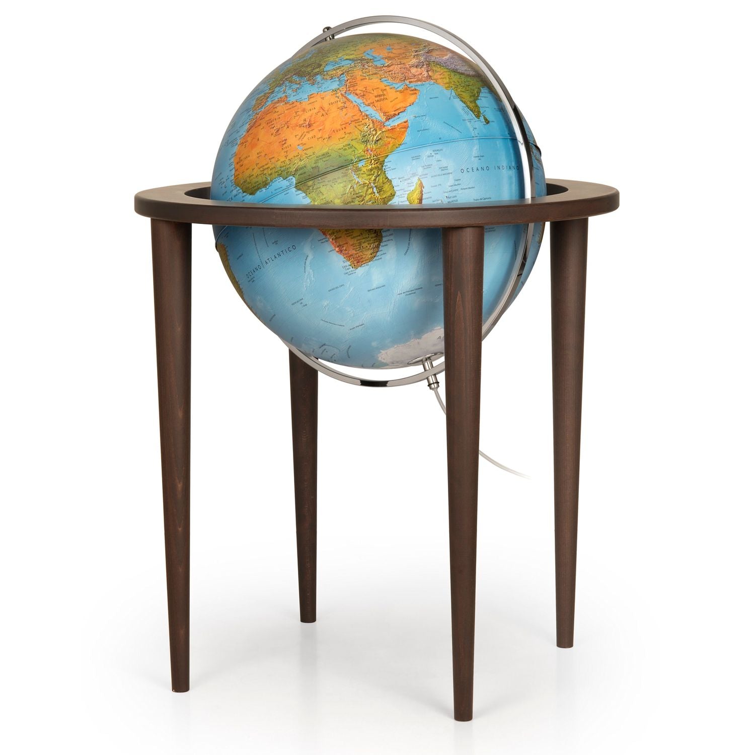 Räthgloben Leucht-Standglobus mit 50 cm Durchmesser, 106 cm Höhe, Gestell aus dunklem Hartholz, verschiedene VariantenMit diesem Standglobus hat Räthgloben einen edlen Globus geschaffen, der sich gut in öffentlichen, Geschäfts- oder anderen repräsentativen Räumen macht. Dieser Stand-Globus überzeugt durch sein stilvolles Design. Das walnussfarbene Gestell und ist aus hochwertigem Hartholz gefertigt. Die Kugel ist nicht nur um ihre eigene Achse drehbar, sondern im vergoldeten Metallmeridian auch schwenkbar, sodass auch die Südhalbkugel bequem zu betrachten ist.